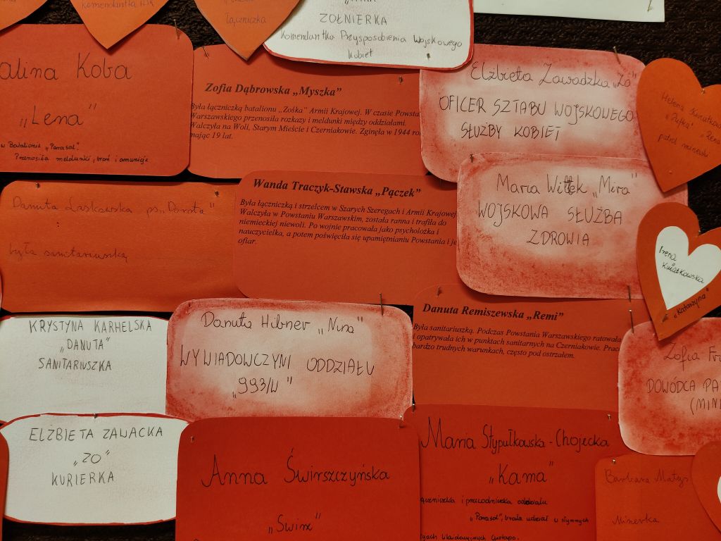 W ramach akcji uczniowie obejrzeli filmy edukacyjne, wzięli udział w lekcjach tematycznych, przygotowali gazetkę na temat Kobiet w powstaniu oraz przygotowali wpisy na stronie dumnizpowstancow.pl, wyrażając w ten sposób pamięć i wdzięczność bohaterkom tamtych dni.