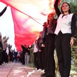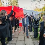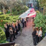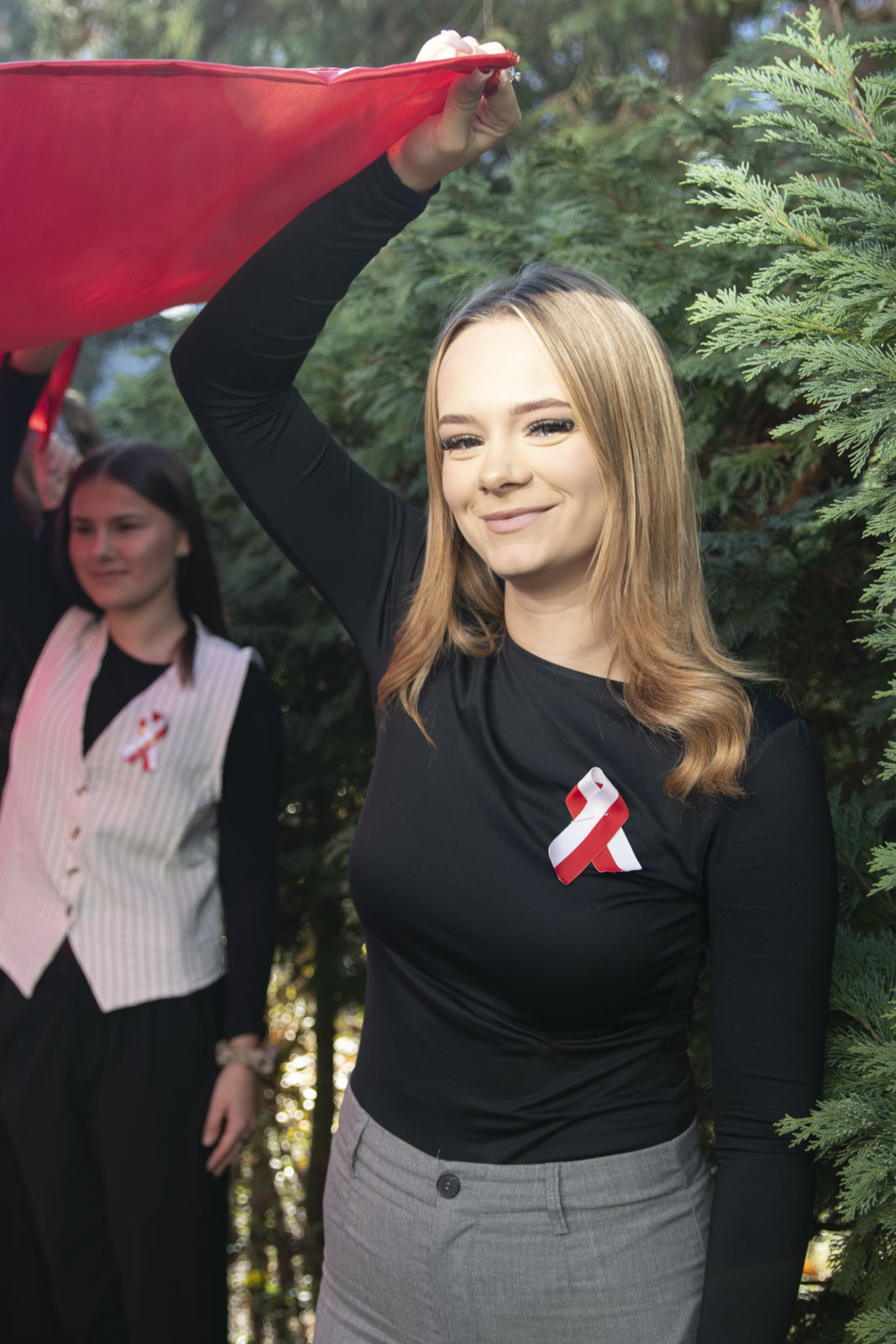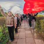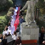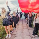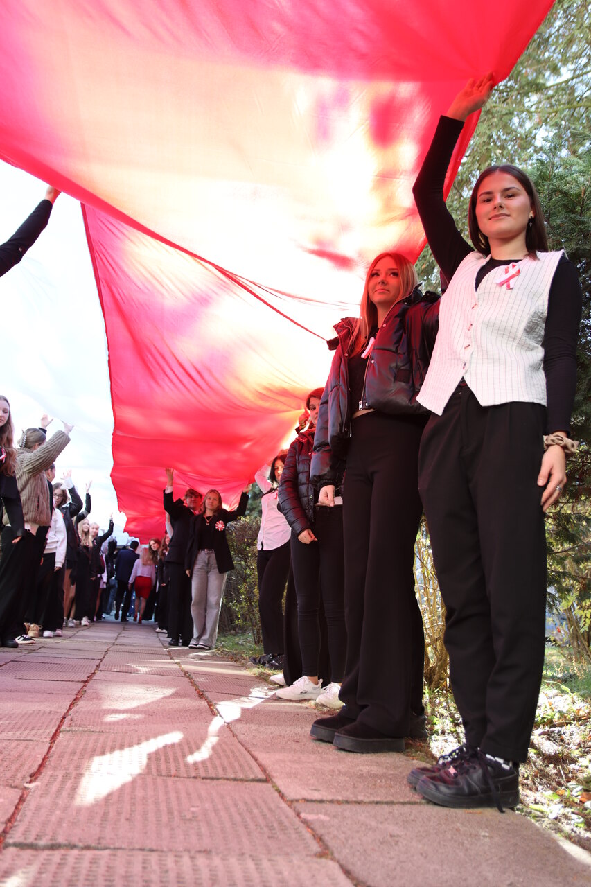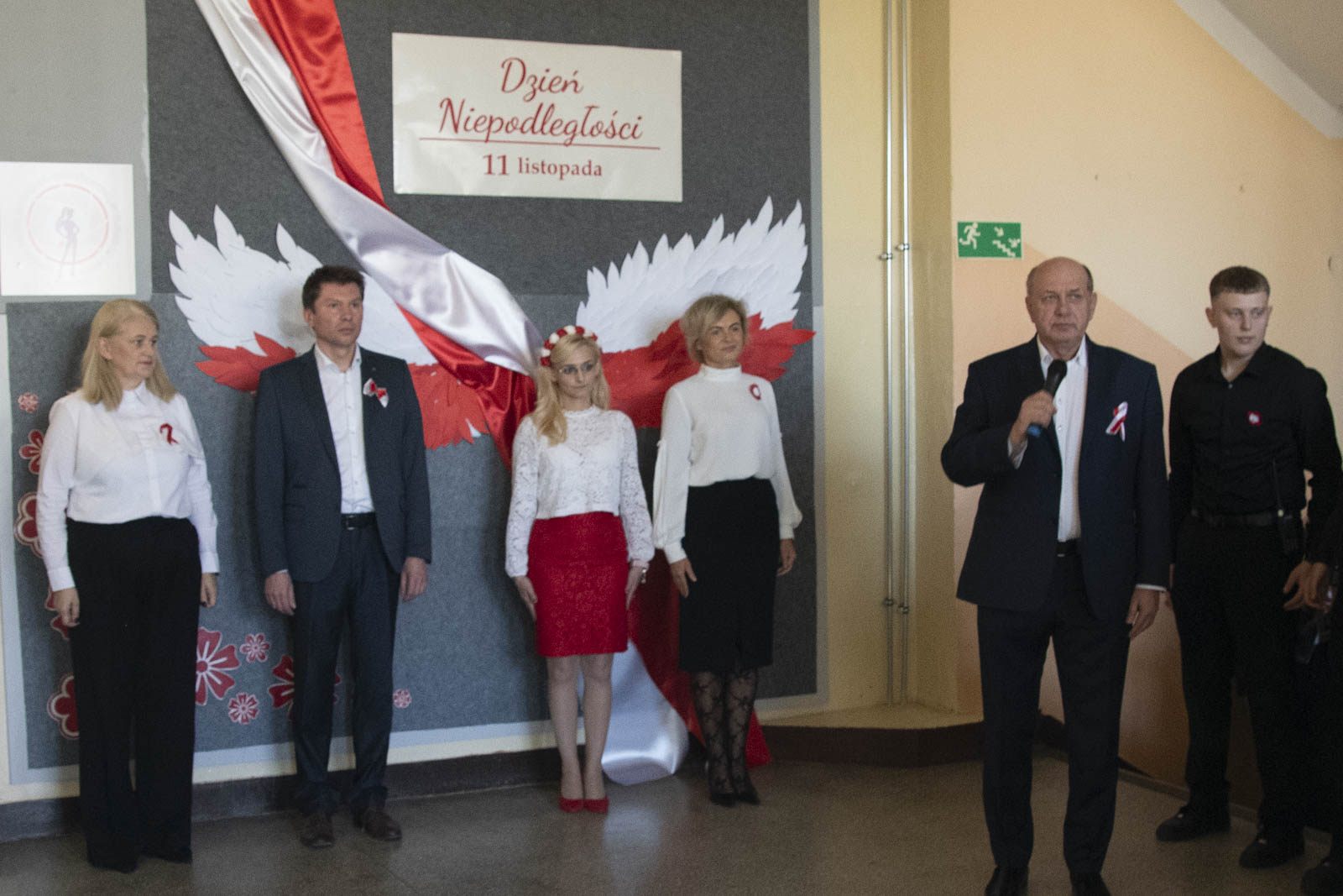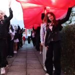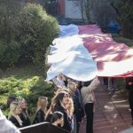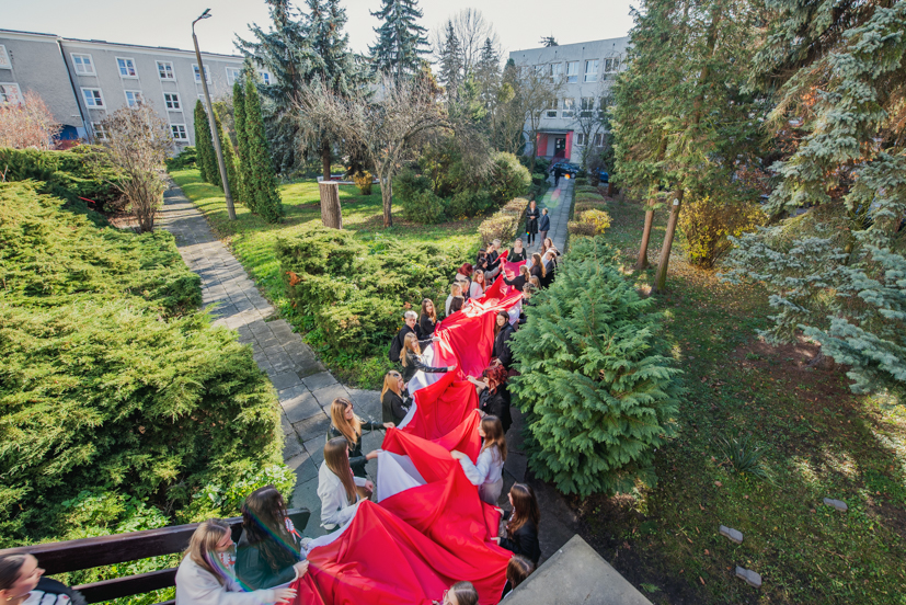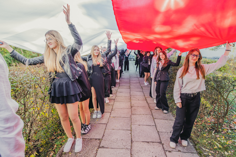 Po hymnie, przedstawiciele klas wyszli na patio szkoły, z uszytą na warsztatach szkolnych specjalnie na tę okazję, 20 – metrową flagę, aby zrobić pamiątkowe zdjęcie.