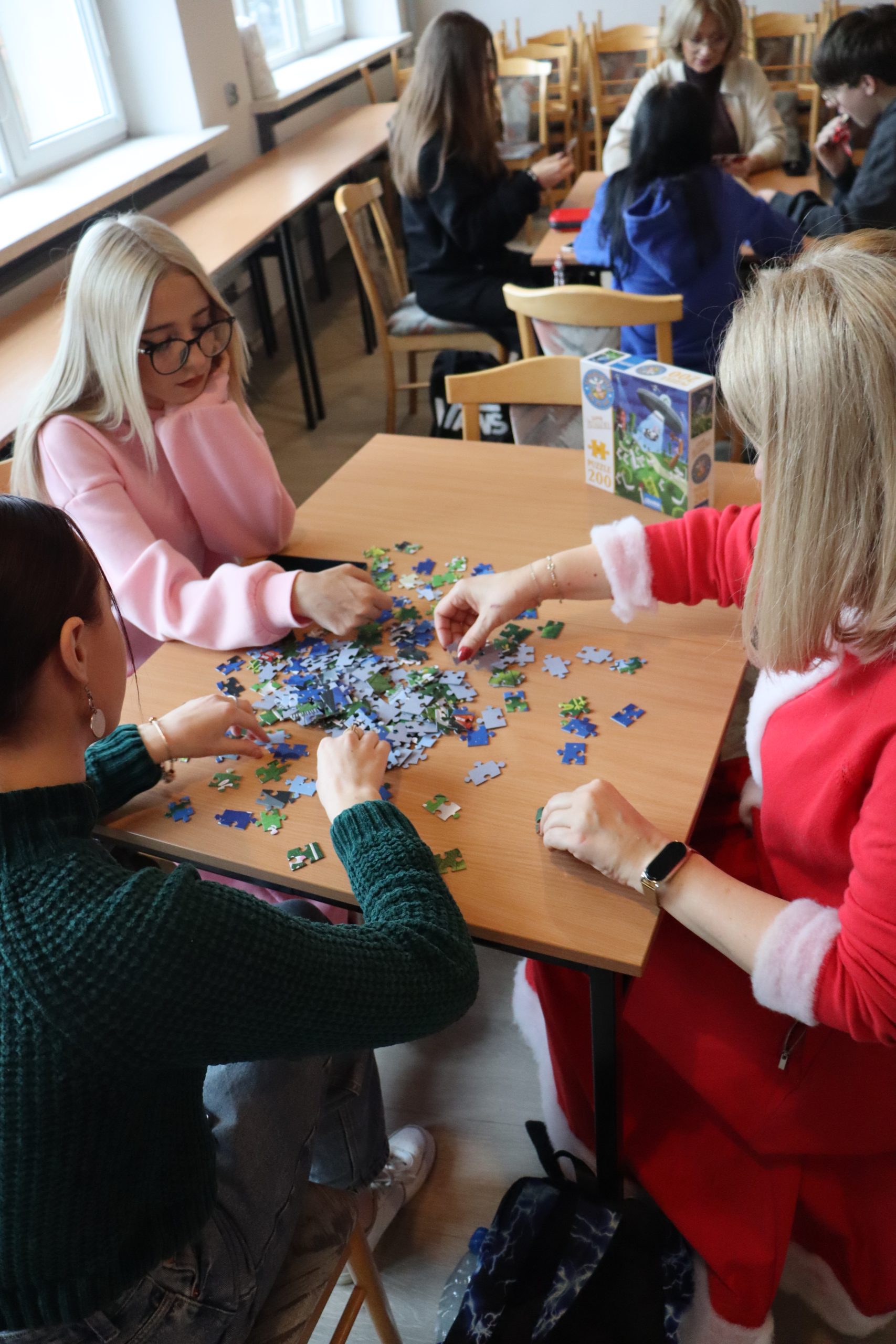 Uczniowie i nauczyciele przyszli w czerwonych stylizacjach i błyszczących akcesoriach, a podczas muzycznych przerw cała szkoła zamieniła się w parkiet.Największą atrakcją było oczywiście spotkanie z Mikołajem. Na koniec sprawdziliśmy spryt i refleks w turnieju gier i łamigłówek.
