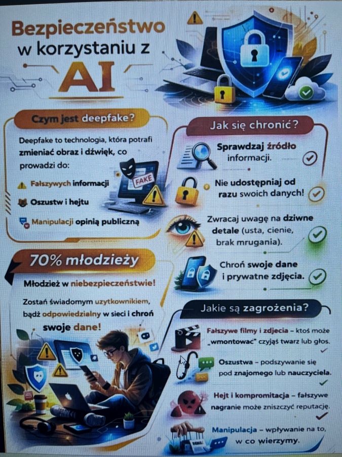 W ramach zapoznania się z zasadami świadomego i odpowiedzialnego korzystania z narzędzi opartych na AI społeczność naszej szkoły wzięła udział w XX Dniu Ochrony Danych Osobowych.