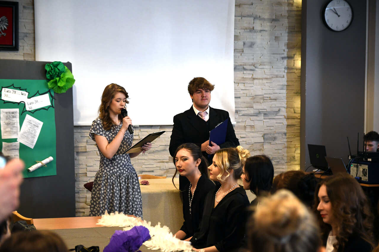 W klimat dwudziestolecia uczestników Dnia Języka Ojczystego wprowadził szkolny chór takimi szlagierami jak: „Lata dwudzieste…lata trzydzieste…” z repertuaru L. Warzechy i „Sex appeal” z repertuaru E. Bodo.