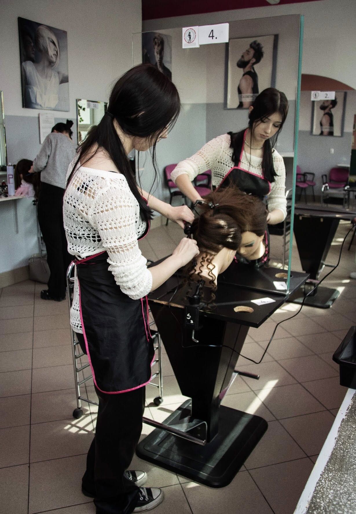 Dnia 10 kwietnia 2026r na warsztatach szkolnych odbył się wewnątrzszkolny konkurs fryzjerski pt:” Królowa Disco lat siedemdziesiątych”. W konkursie wzięło udział 8 zawodników z klas fryzjerskich.